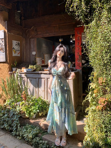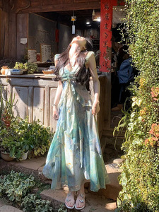 《林间浮夏》2025春夏新款设计感度假风印花波西米亚仙女连衣裙