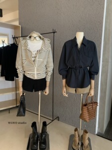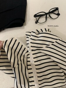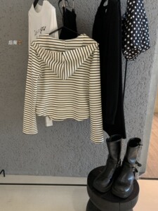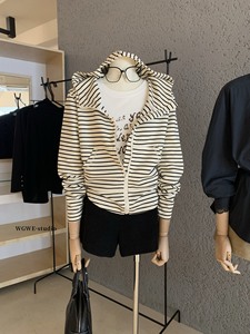 【WGWE】6932#时尚条纹连帽长袖防晒空调衫短外套秋慵懒休闲上衣
