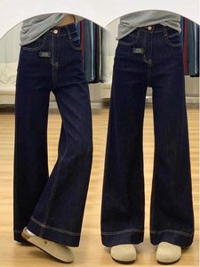 丹宁蓝小个子微喇牛仔裤女新款深蓝色高腰显瘦阔腿喇叭长裤子