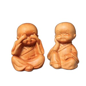 崖柏木雕四不小和尚小沙弥手把件不说不听不看不想文玩工艺品摆件