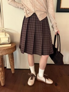 KITTIN秋季女韩系学院风气质百搭显瘦后松紧高腰格纹休闲半身裙女