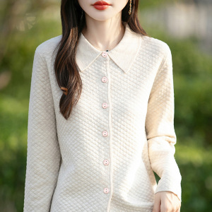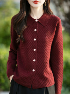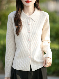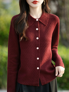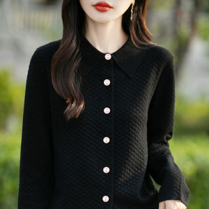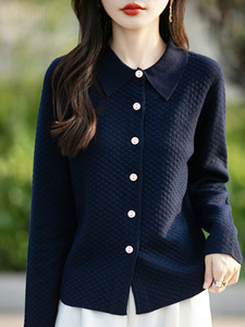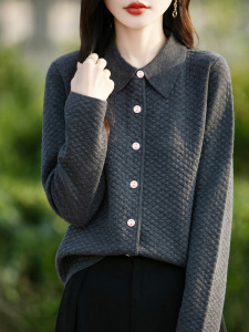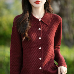 小菱形暗纹提花针织开衫女2025秋冬新款精纺羊毛polo针织外套