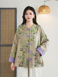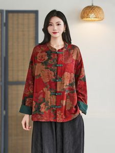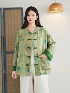 2025秋季新款拼色印花衬衫开衫 休闲上衣文艺复古棉纱外套女