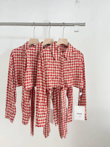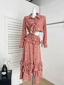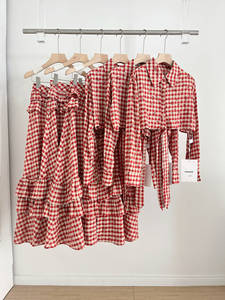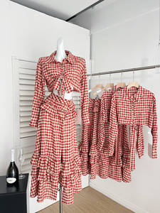 韩系设计感小众温柔舒适大裙摆红格裙印花荷叶边新疆旅游穿搭套装
