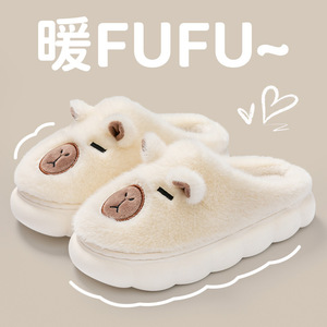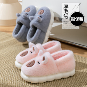 2025新款包跟卡通棉鞋女士秋冬季毛毛绒防滑保暖情侣款可爱月子鞋