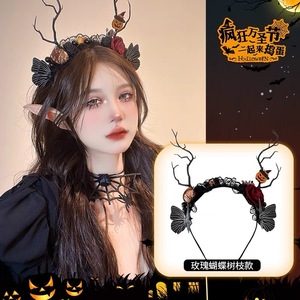 万圣节头饰品搞怪拍照道具cos装扮树枝发箍蝴蝶发饰黑色鹿角头箍