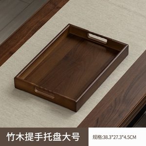中式高档家用放水杯子竹制方形多功能收纳盘面包蛋糕下午茶餐盘