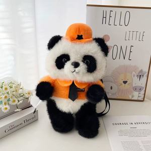 可爱警察熊猫毛绒双肩包成都礼品呆萌制服大熊猫儿童包包厂家直销
