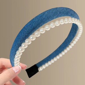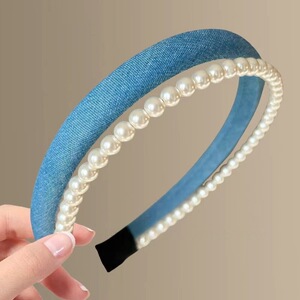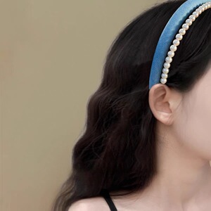 蓝调时分~复古牛仔双层珍珠发箍女2025新款高级洋气时尚头箍盘发