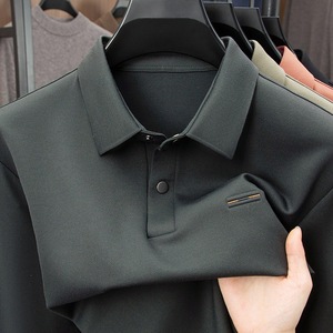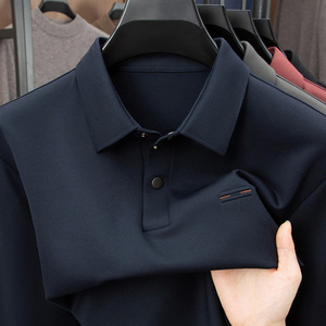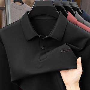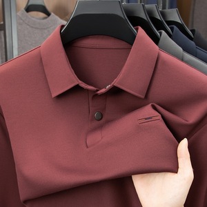 喜公公红色中年男士长袖t恤2025新款爸爸秋装翻领冰丝打底POLO衫