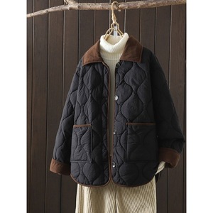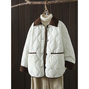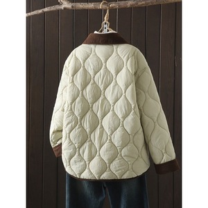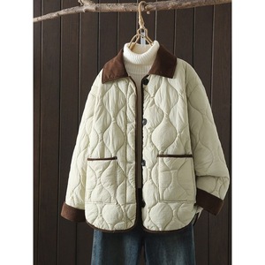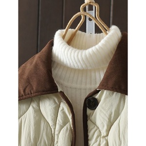 小香风撞色翻领菱格羽绒棉服女冬季韩版轻薄夹棉保暖棉衣短款外套