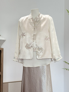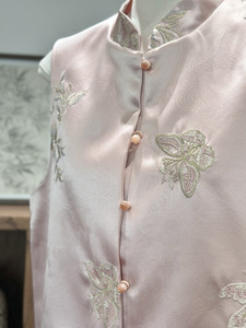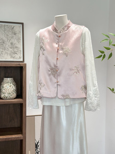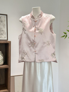 新中式粉色高端醋酸缎面提花刺绣马甲国风气质盘扣坎肩背心上衣秋