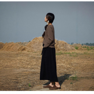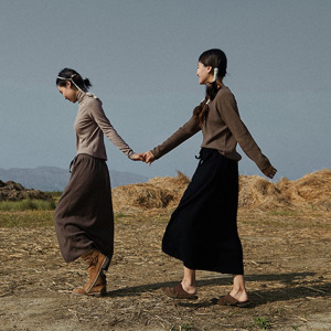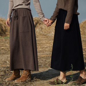 100%羊毛秋冬新款款松紧腰半身裙长裙显瘦双兜A字针织高腰伞裙女