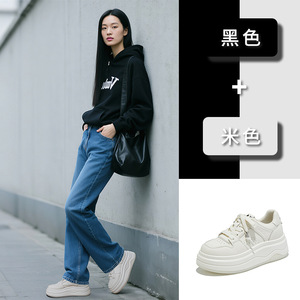 吸膜底真皮小白鞋女2025秋季新款女鞋通勤厚底鞋不累脚圆头单鞋女