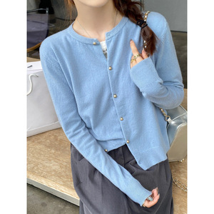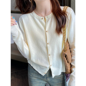 新款灰色针织开衫女秋季外搭设计感毛衣外套早秋薄款长袖上衣女
