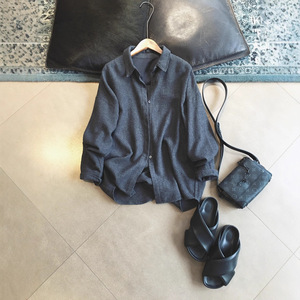精纺羊毛纺 记忆翻领边落肩长袖衬衣 一件代发