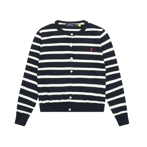 跨境拉夫高版本RL条纹圆领基础小马刺绣logo针织开衫长袖圆领春秋