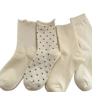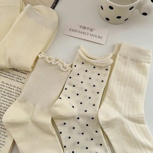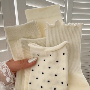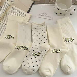 卷边波点袜子女夏季白袜褚暨袜子中筒袜学生日系春秋ins潮堆堆袜