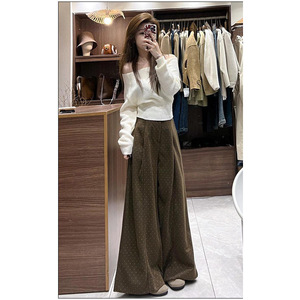 针织上衣+波点阔腿裤两件套