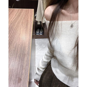 套装女2025冬季新款慵懒斜肩软糯毛衣针织上衣复古波点拖地阔腿裤