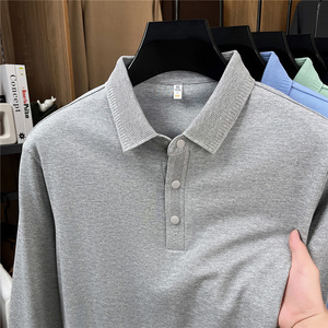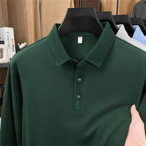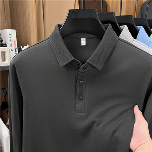 春秋季新款长袖高档商务polo衫外贸男士纯色翻领休闲打底上衣代发