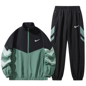 春秋薄款男士运动休闲拼接套装潮牌时尚男装立领夹克束脚长裤套装