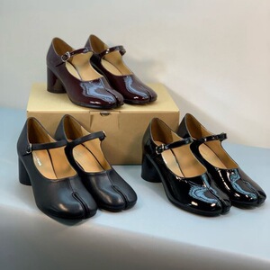 对版高端英伦风复古一字带玛丽珍tabi分趾猪蹄鞋真皮高粗跟单鞋女