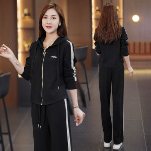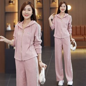 加厚休闲运动套装秋冬洋气显瘦连帽开衫卫衣阔腿裤
