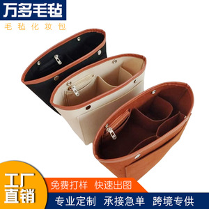 跨境新款毛毡内胆包多功能女士旅行化妆包大容量按扣毛毡收纳包