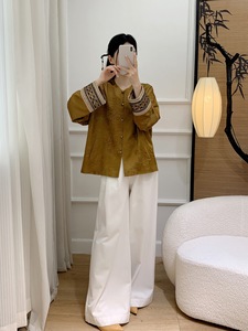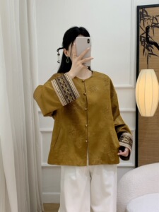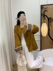 新中式刺绣拼接袖口外套2025秋季新款优雅气质宽松遮肉长袖上衣女