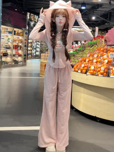 韩系ins甜美条纹连帽睡衣女秋季2025新款修身长袖长裤家居服套装