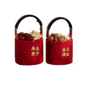 【早生贵子】陶瓷子孙桶一对+扁担+枣生桂子干果一套