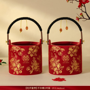 结婚子孙桶一对女方陪嫁妆用品大全娘家婚庆红色喜桶宝桶装饰摆件