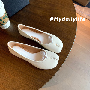 牛皮版~葡萄妈同款鞋真皮猪蹄分趾鞋个性浅口平底乐福鞋女单鞋子