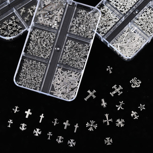 跨境网红克罗心美甲饰品暗黑6格混装合金银色十字立体DIY美甲钻饰