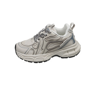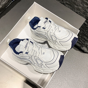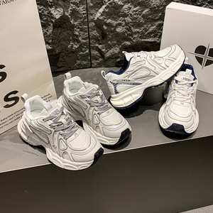 2025早春新款ins厚底老爹鞋女黑色百搭时髦系带显脚小休闲运动鞋