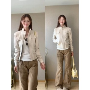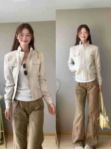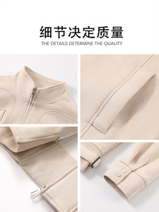 秋季美式正肩夹克短款麂皮外套女款秋2025新款小个子韩系早秋穿搭