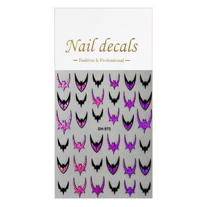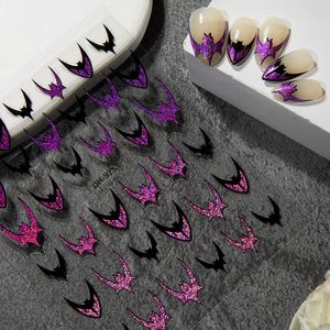 万圣节美甲贴纸镭射金银烫金闪亮流苏指甲贴蝙蝠法式暗黑背胶贴纸