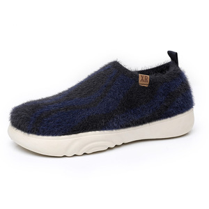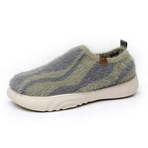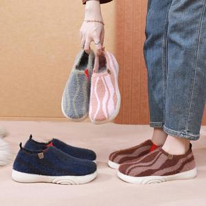 2025秋季新款透气毛毛条纹软底防滑妈妈鞋一脚蹬时尚休闲懒人鞋女