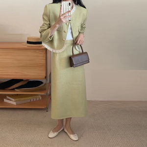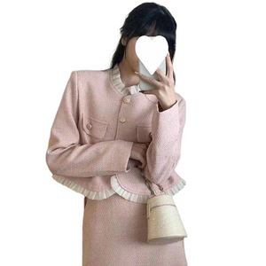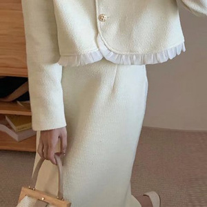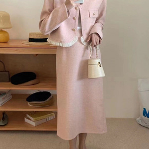 洋气套装女2025冬季千金花边外套裙子小香风一整套