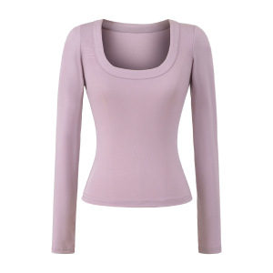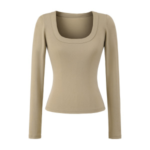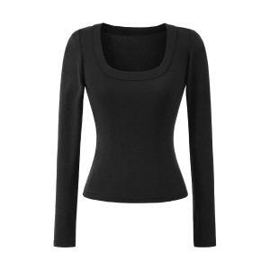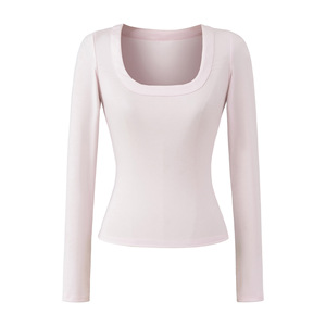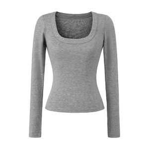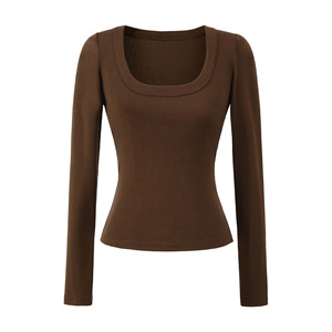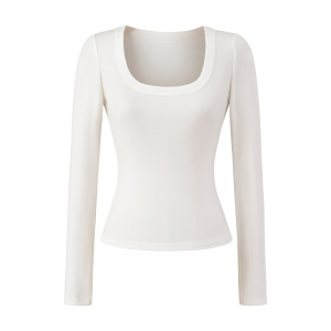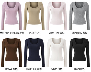 法式修身大U领天丝上衣早秋新款正肩高弹修身打底衫显瘦收腰T恤