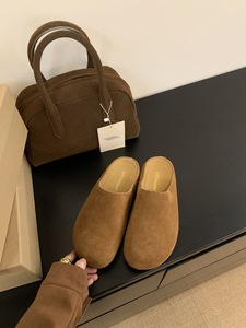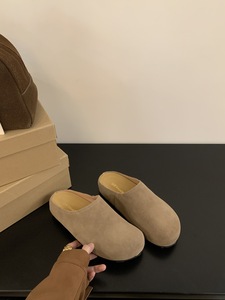 真皮厚底勃肯鞋包头半拖鞋女外穿2025秋新款复古穆勒鞋软底博肯鞋