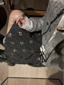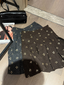 2025秋冬新款重工四叶草珠片钉珠毛呢百褶高腰中裙女时尚半身裙