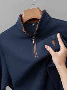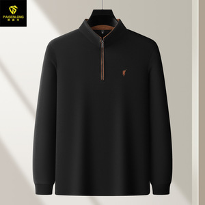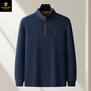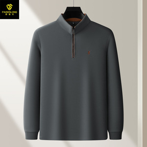 派森龙2025秋冬长袖立领拉链男polo菠萝格双面珠地小马刺绣男T恤