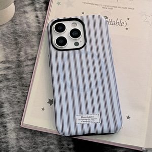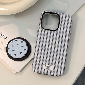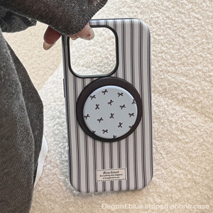 蓝黑条纹iPhone16promax苹果15手机壳17适用13蝴蝶结磁吸支架11韩