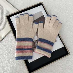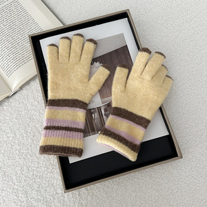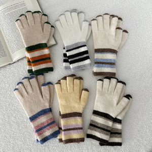 学生冬季户外针织保暖手套撞色条纹拼色手套男露指骑行跑操手套女