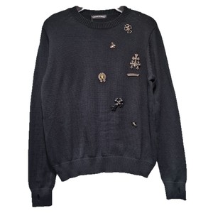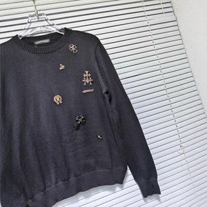 外贸跨境高品质25ss CH 秋冬新款梵文十字架圆领套头针织毛衣现货