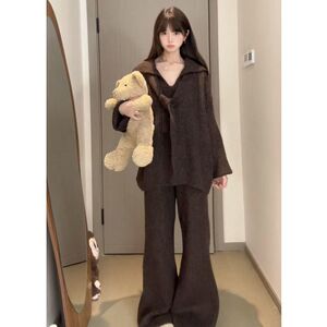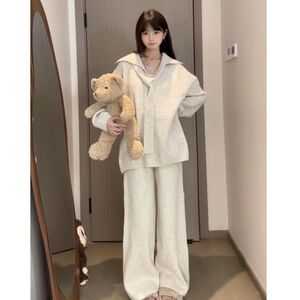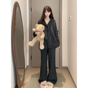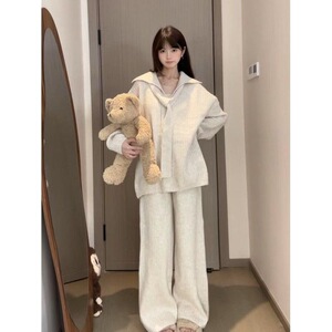 宽松慵懒风针织三件套女秋冬穿搭一整套领带毛衣阔腿裤休闲套装女