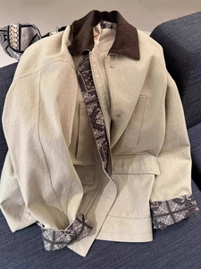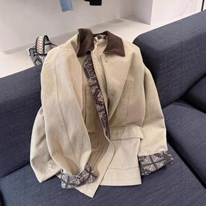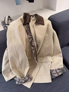 老钱风撞色拼接翻领风衣外套女秋2025新款复古休闲气质中长款夹克