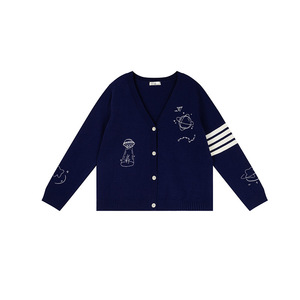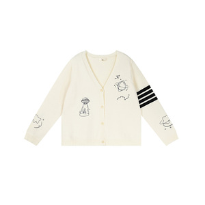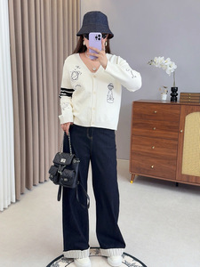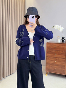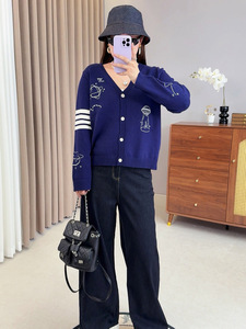 双天2025秋季新款胖mm大码女装趣味图案V领薄款针织开衫上衣F527